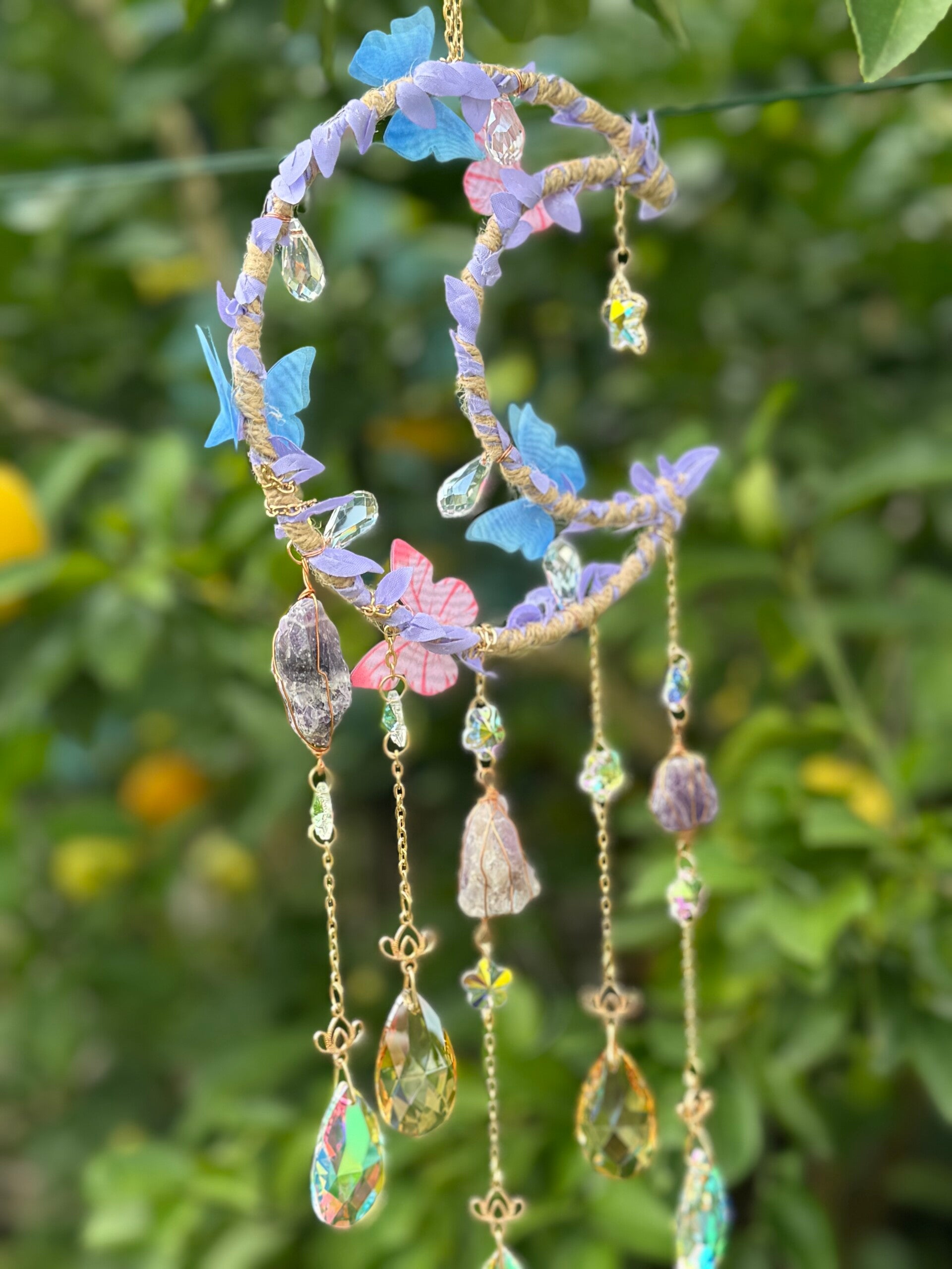 Bring a touch of fairy tale charm to your home with our delightful Butterfly Sun catcher. Crafted from high-quality metal and adorned with shimmering crystals, this 50cm long sun catcher is the perfect addition to any sunny window or outdoor space. The intricate butterfly design captures the light and creates a mesmerizing display of colorful reflections, bringing joy and magic to any room. Whether you're an avid sun catcher collector or simply looking to add a whimsical touch to your decor, this enchanting Butterfly Sun catcher is sure to delight. Add a pop of Purple color and a sprinkle of enchantment to your surroundings with this beautiful sun catcher.
