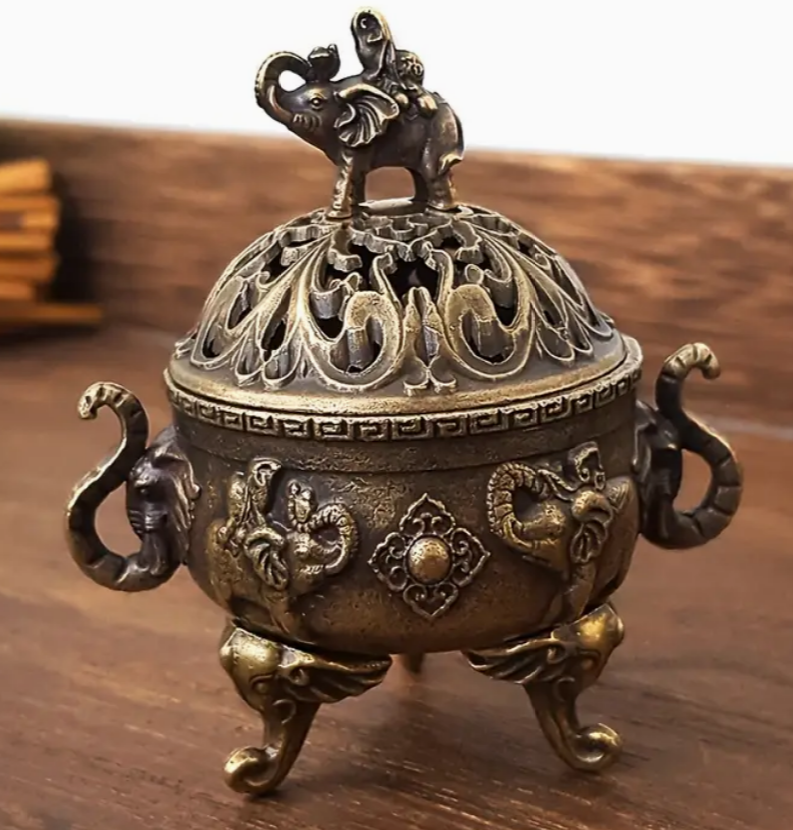 Elevate your incense burning experience with our stunning 3 Legged Elephant Incense Burner. Crafted from a durable metal alloy, this incense burner features a unique three-legged design and intricate elephant decor, making it a beautiful addition to any home. Measuring 6cm x 5.5cm, this burner is the perfect size for any space. The set includes a heat mat, gift bag, and 2 incense cones, so you can start enjoying your new burner right away. Whether you're a fan of incense or simply appreciate beautiful decor, our 3 Legged Elephant Incense Burner is sure to add a touch of elegance to your space.