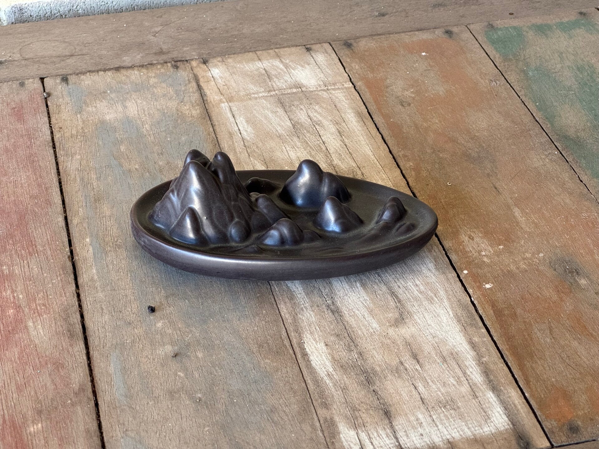 Introducing our Incense Mountain Backflow Burner, the perfect addition to your zen space. Measuring at 14 cm long and 7.5 cm high, this burner is designed for use with cone incense. Crafted from ceramic material in a rich brown hue, this burner features a unique backflow design that creates the illusion of smoke falling down the mountain and settling in the base, creating a tranquil and mesmerizing display. Add a touch of calming ambiance to your home or office with our Incense Mountain Backflow Burner.