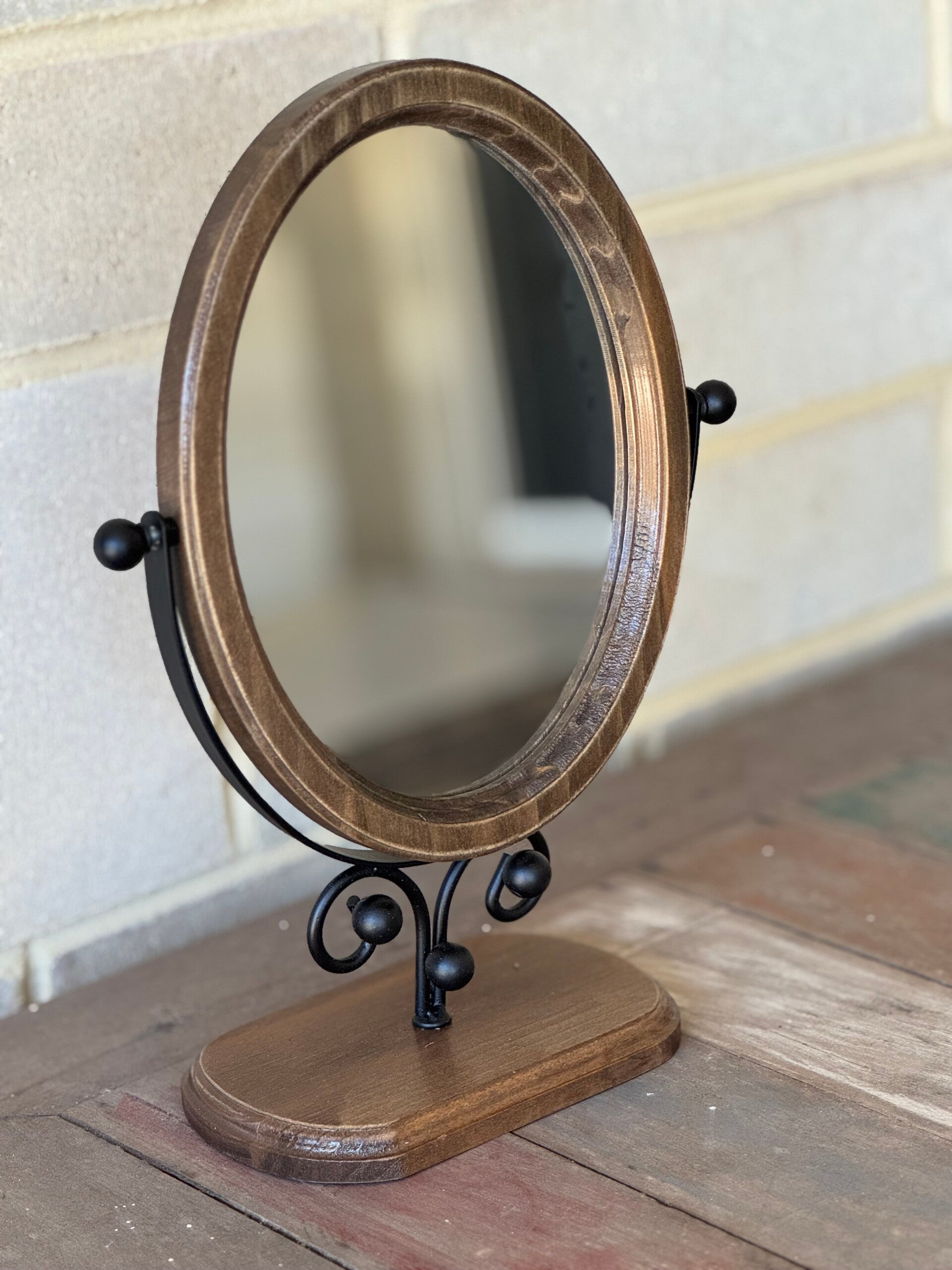 Add a touch of vintage charm to your vanity or dresser with our Mirror Vintage Floral Wooden. Crafted from high-quality wood, this rotating mirror features a vintage floral design that adds a stylish element to any space. Double-sided with a sturdy base ensures stability, while the 31cm height and 22cm width make it the perfect size for any tabletop. This free-standing mirror is not only functional but also brings a classic, timeless style to your decor. Whether you're getting ready in the morning or simply adding a decorative accent to your room, this mirror is a must-have for any vintage enthusiast.