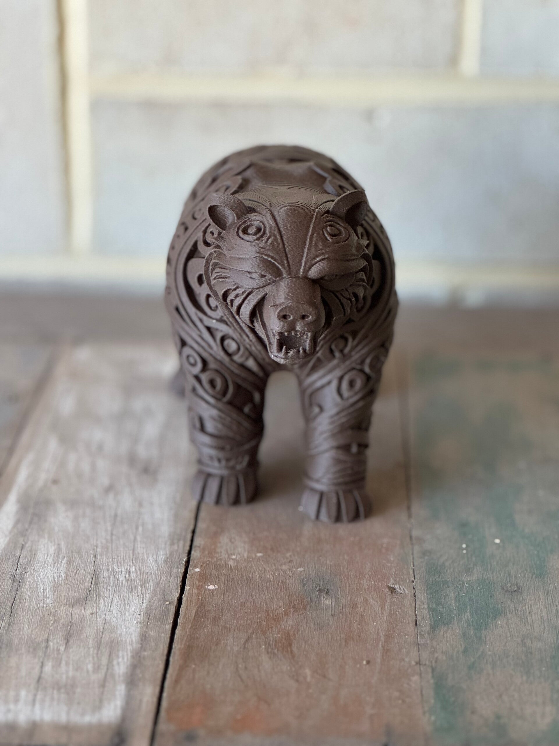 Introducing the Art Deco Bear sculpture, a stunning addition to any art collection. Crafted from high-quality Pla Matte material, this sculpture stands at 13cm high and is 22cm long, making it the perfect size to display on a shelf or mantel. The bear features intricate markings, capturing the essence of the Art Deco style with its geometric shapes and bold lines. Whether you're a fan of animal art or a lover of Art Deco design, this sculpture is sure to make a statement in any room. Add a touch of elegance and sophistication to your home with the Art Deco Bear sculpture.