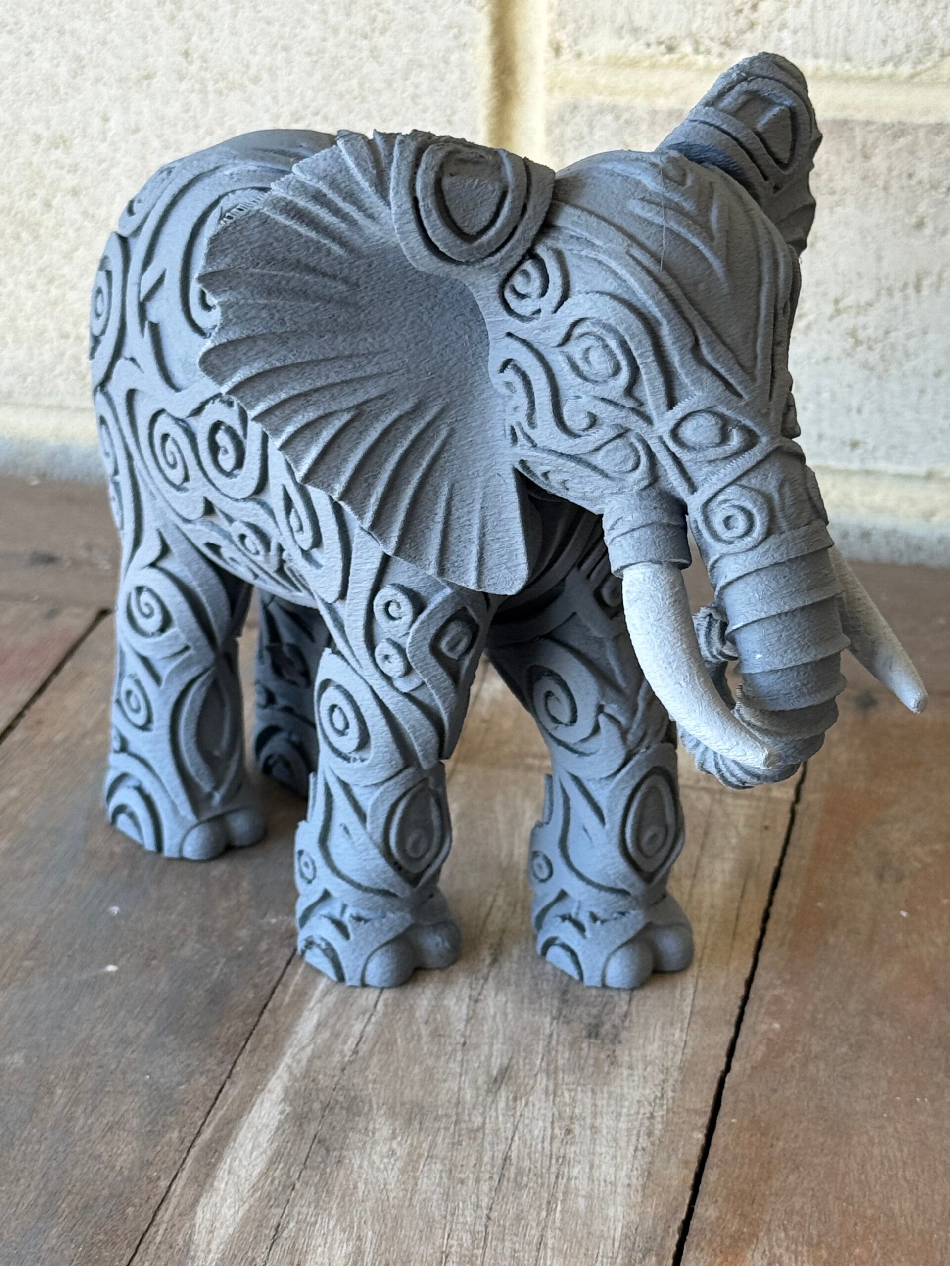 Introducing our stunning Art Deco Elephant Sculpture, a captivating piece that adds a touch of elegance to any space. Crafted with meticulous attention to detail, this sculpture features a sleek grey plaque matte finish that complements its modern design. Measuring 16x22x12cm, this piece is the perfect size for displaying on a shelf, mantel, or desk. With its intricate Art Deco-inspired style, this elephant sculpture is sure to be a conversation starter and a cherished addition to your art collection. Whether you're a dedicated art enthusiast or simply looking to elevate your decor, this unique sculpture is a must-have for any home or office.